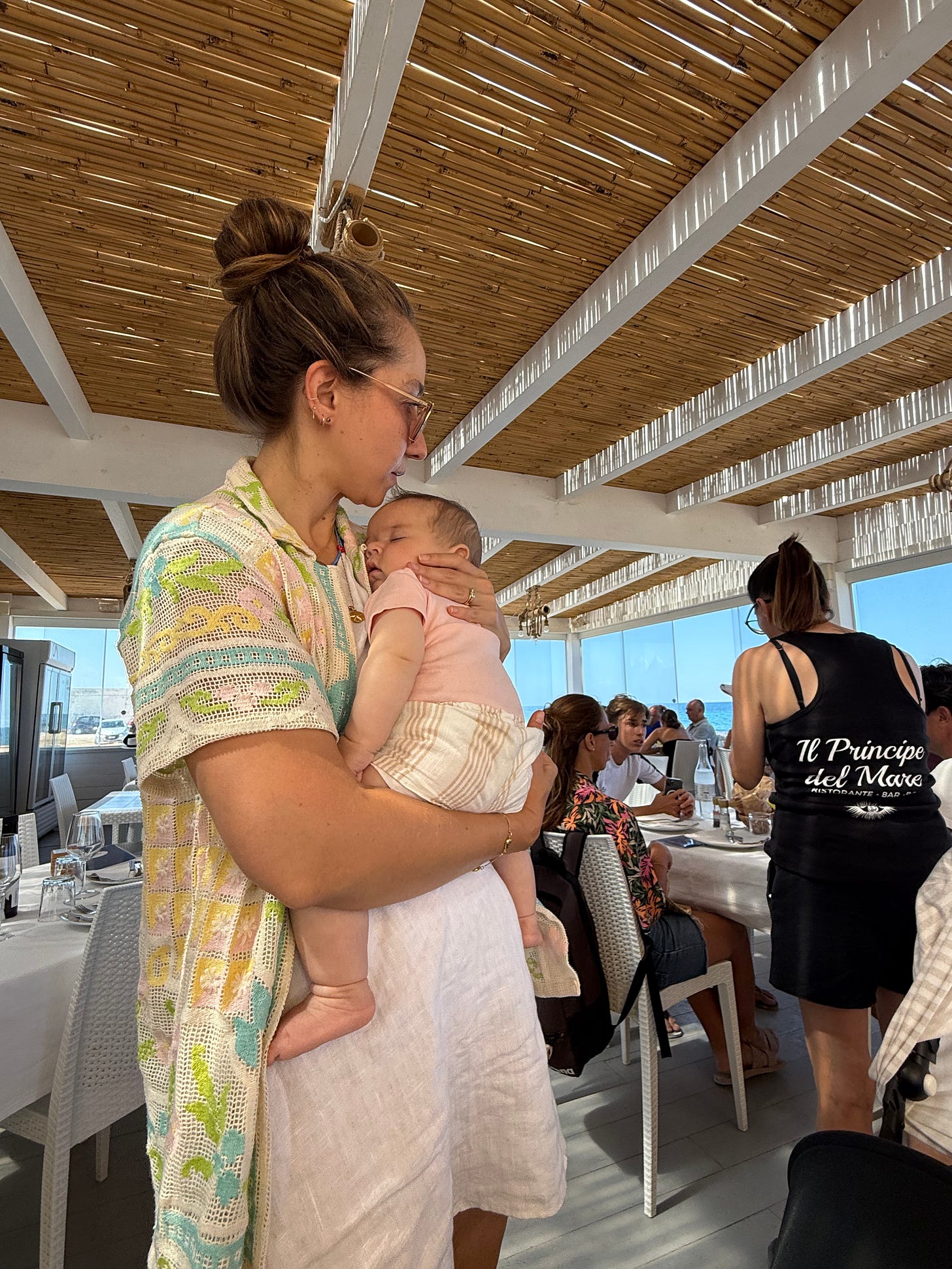 We made our way to Il Principe del Mare, a casual seaside restaurant, for lunch. Cecilia continued to softly moan. At the risk of sounding braggadocios, we have a chill-ass baby. Something was afoot. Tiff and I had lunch in shifts as we traded turns of beautiful soothing and making failed attempts at soothing our daughter.